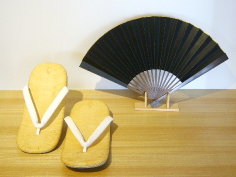 本ナメシ花緒に畳表の草履は、台にゆるやかな傾斜があるため、長時間履いていても