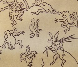 シックな半衿に、兎や蛙が元気よく飛び跳ねている鳥獣戯画の長襦袢で遊び心をプラスしてみました。