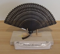かんざし ガラス 白 扇子・袋セット 竹 黒 箱有