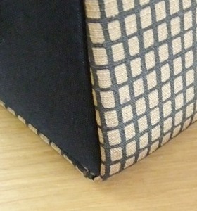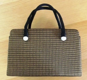 バッグのマチ部分は黒で、両面は秋色の芥子地に太めの格子というデザインになっています。