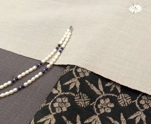 パールとラピスラズリを配した羽織紐が、品良くお洒落なアクセントになっています。