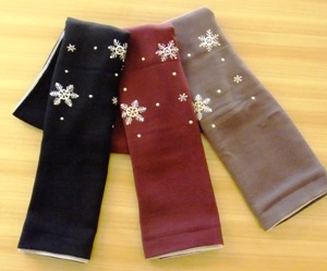刺繍された雪の結晶が冬らしい縮緬ショールです。