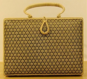 伊と忠 夏帯地 利休バッグ 白地 松葉市松