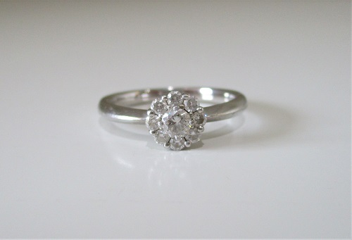 ダイヤの優れたカット技術で定評があるロイヤルアッシャーの指輪です。真ん中のダイヤを8粒のメレダイヤで囲み、お花の様な可愛らしいデザインが魅力です。大人のクールな装いに、可愛らしい指輪で甘さをプラスされてみてはいかがでしょうか?